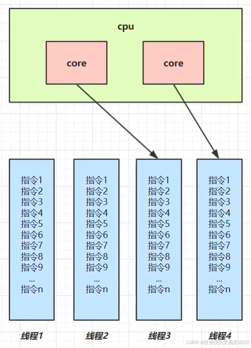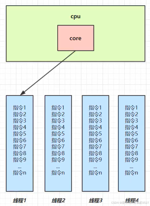 上图即是CPU核心将任务工作在不同线程间反复运行