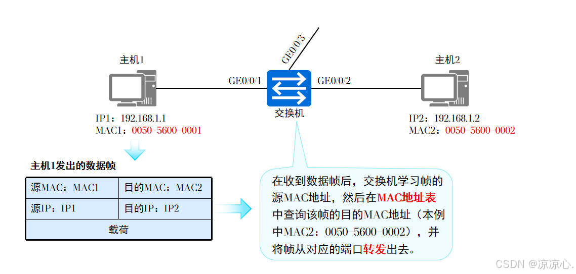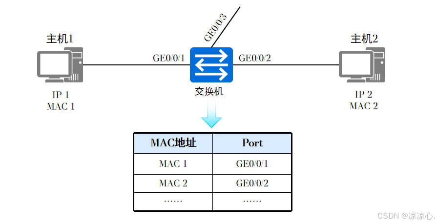 每台交换机中都有一个MAC地址表,存放了MAC地址与交换机端口编号之间的映射关系