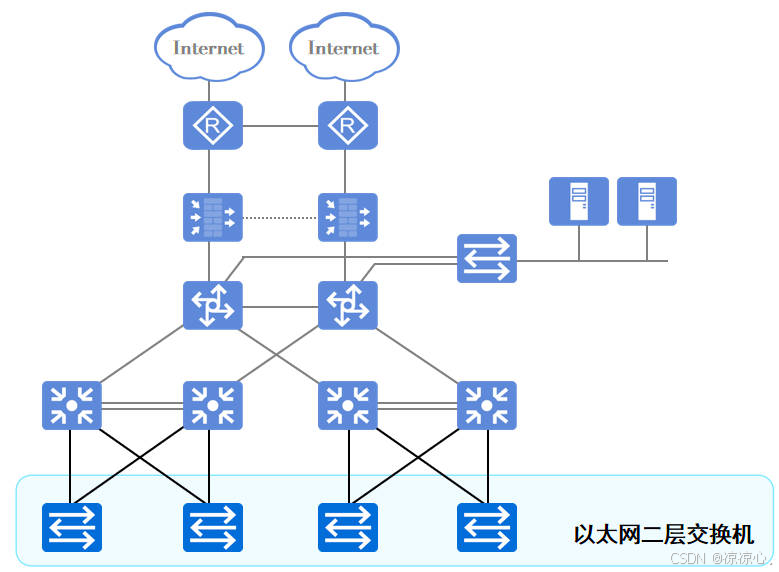 以太网二层交换机转发数据的端口都是以太网口,并且只能够针对数据的二层头部(以太网数据帧头)中的MAC地址进行寻址并转发数据。