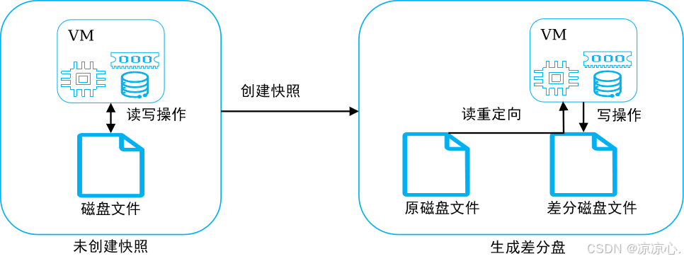 - 应用于对虚拟机进行升级、打补丁、测试等破坏性操作前,