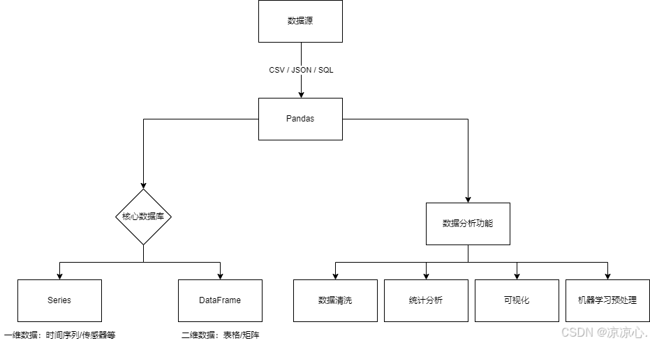 Pandas 提供了易于使用的数据结构和数据分析工具,特别适用于处理结构化数据,如表格型数据(类似于Excel表格)。