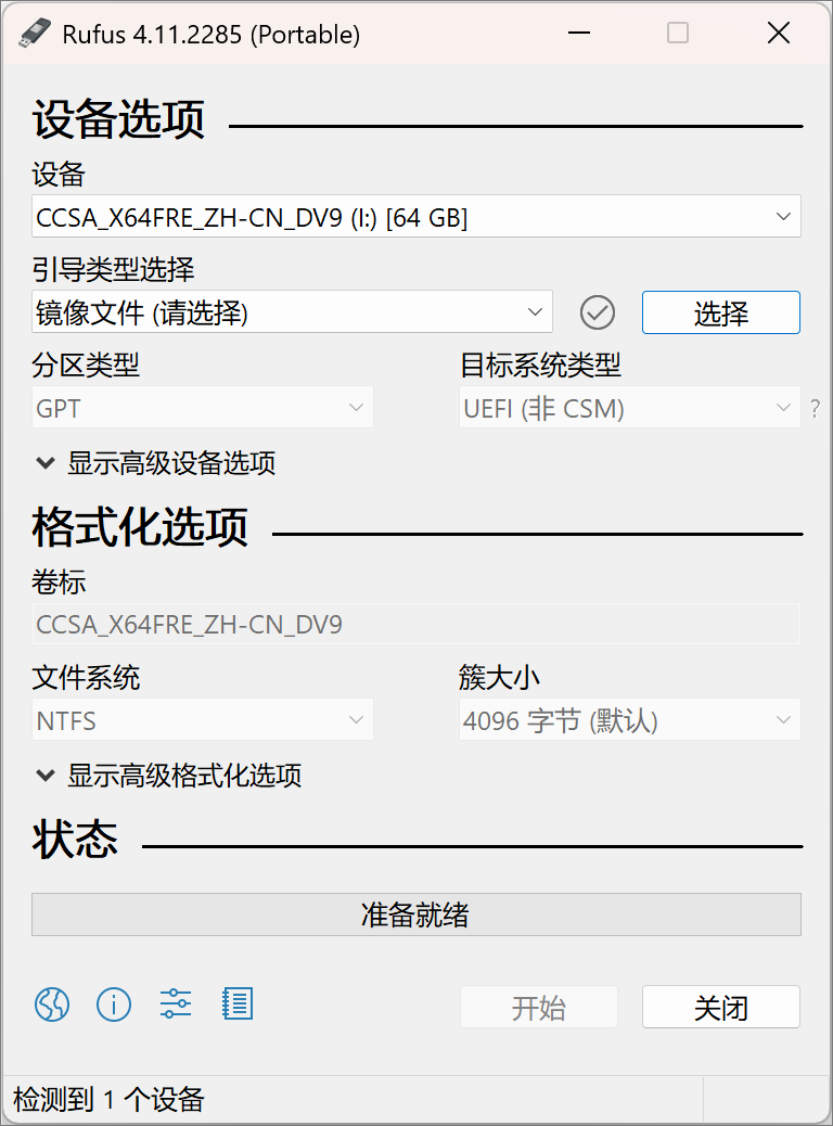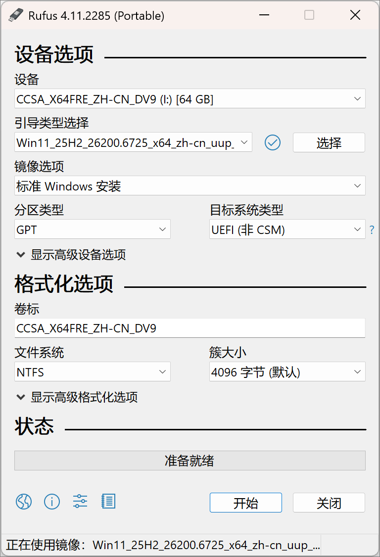 选择需要制作的系统映像,这里以Win11为例,其他选项一般保持默认即可,点击开始
