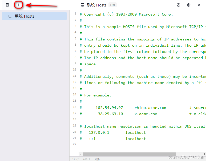 4.1 创建第一个Hosts配置 点击左上角"+"按钮