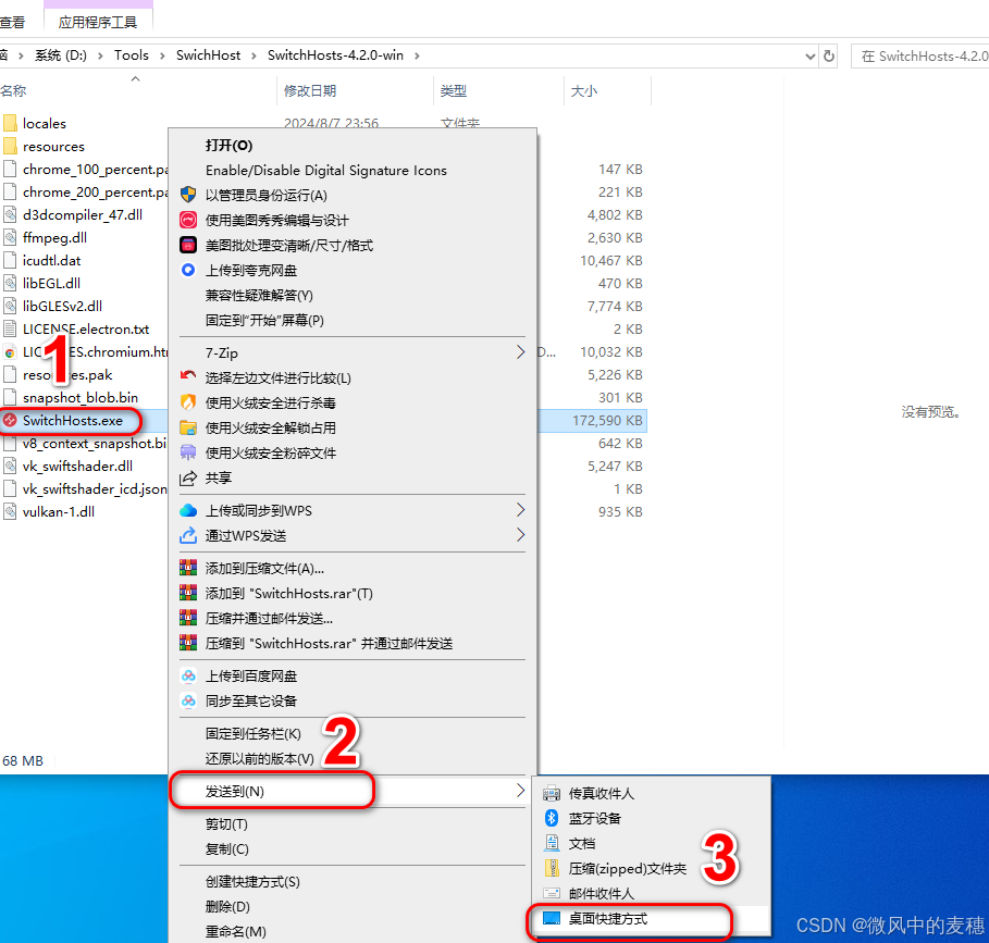 打开解压好的文件夹,右键SwitchHosts.exe发送到桌面快捷方式