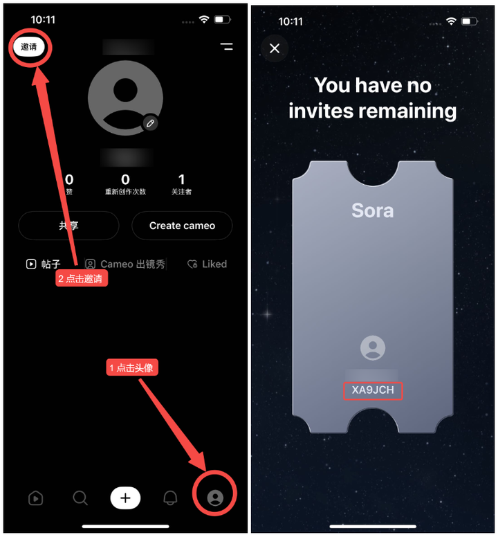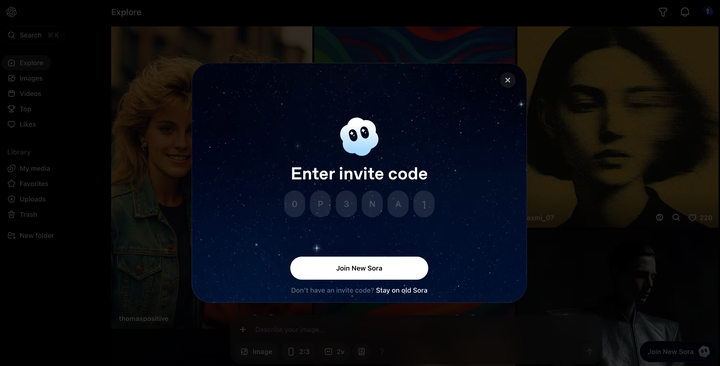 Sora 的邀请系统采用“1 邀 4”模式,成功激活后你就有四个新的邀请码可以分享给好友(会改变这个机制,我只有两次)。OpenAI严禁买卖邀请码。不要从不明渠道购买,以防财产损失和账号风险。
