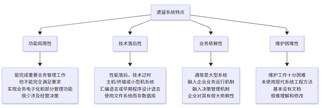 遗留系统是指任何基本上不能进行修改和演化以满足新的变化了的业务需求的信息系统。