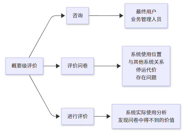 ⚠️希赛教育专家提示:详细级评价包括应用系统不符合业务规范的风险分析,这种分析十分费时,最好由业务分析师来 完成详细级的评价