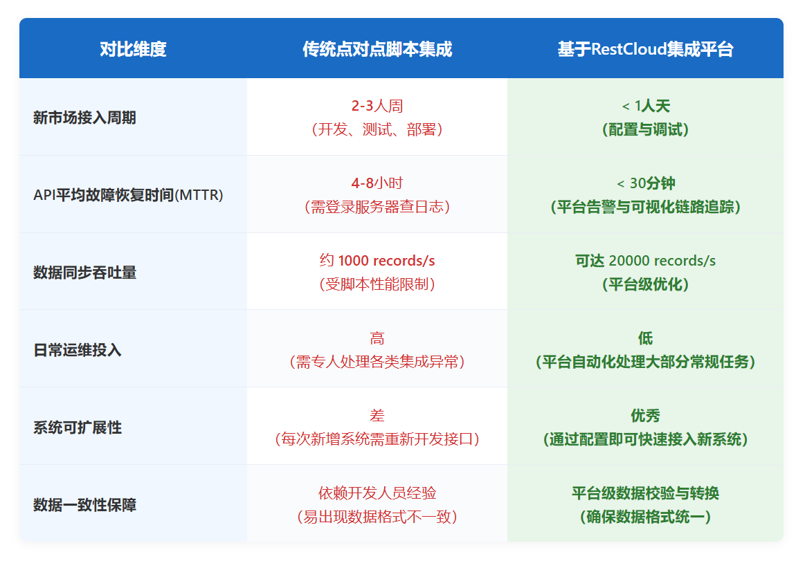 为了更直观地展示差异,我们以一个中等规模的跨境电商为例,对其“订单履约”核心流程的集成方案进行对比分析。