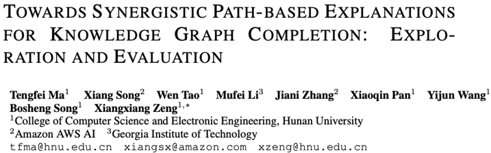 参考资料: [1] Ma, Tengfei, et al. "Towards synergistic path-based explanations for knowledge graph completion: Exploration and evaluation." The Thirteenth International Conference on Learning Representations. 2025. [2] https://github.com/xiaomingaaa/KGExplainer