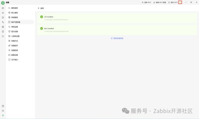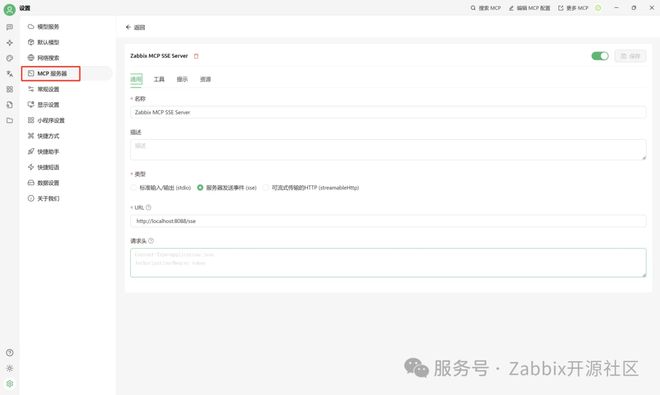 助手工具菜单中MCP服务器选择“Zabbix MCP SSE Server”