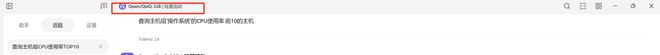 按照预览示例中输入的问题进行提问“查询'操作系统'的'CPU使用率'前10的主机“,呈现效果如下: