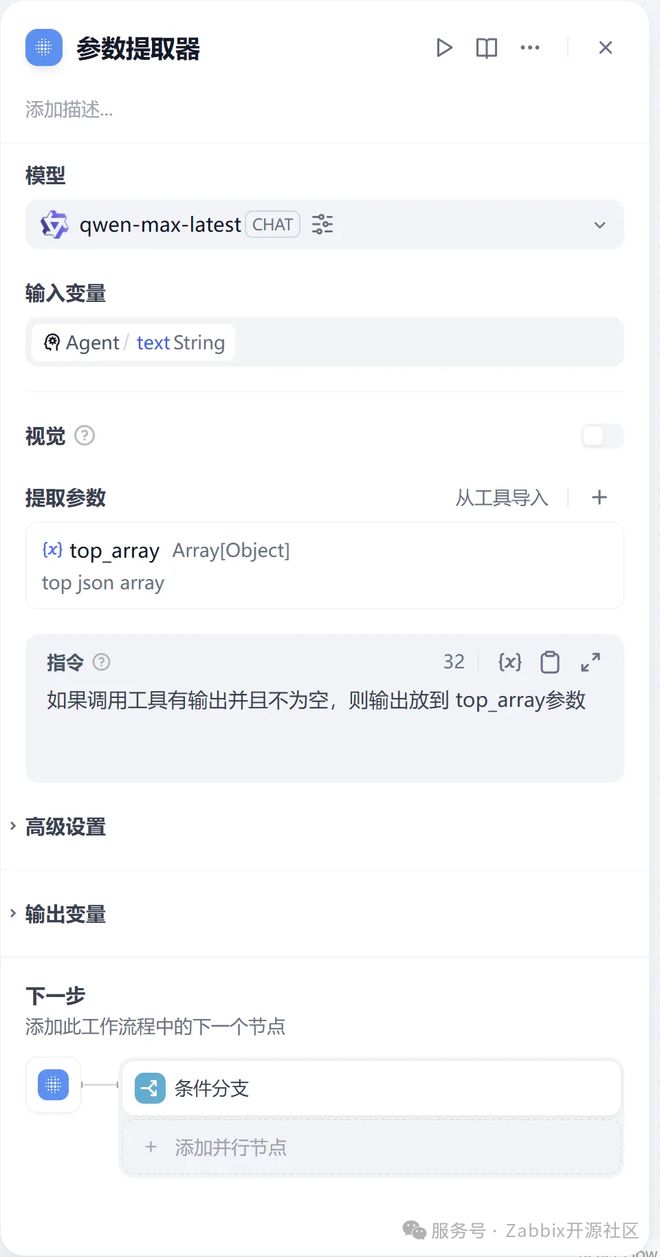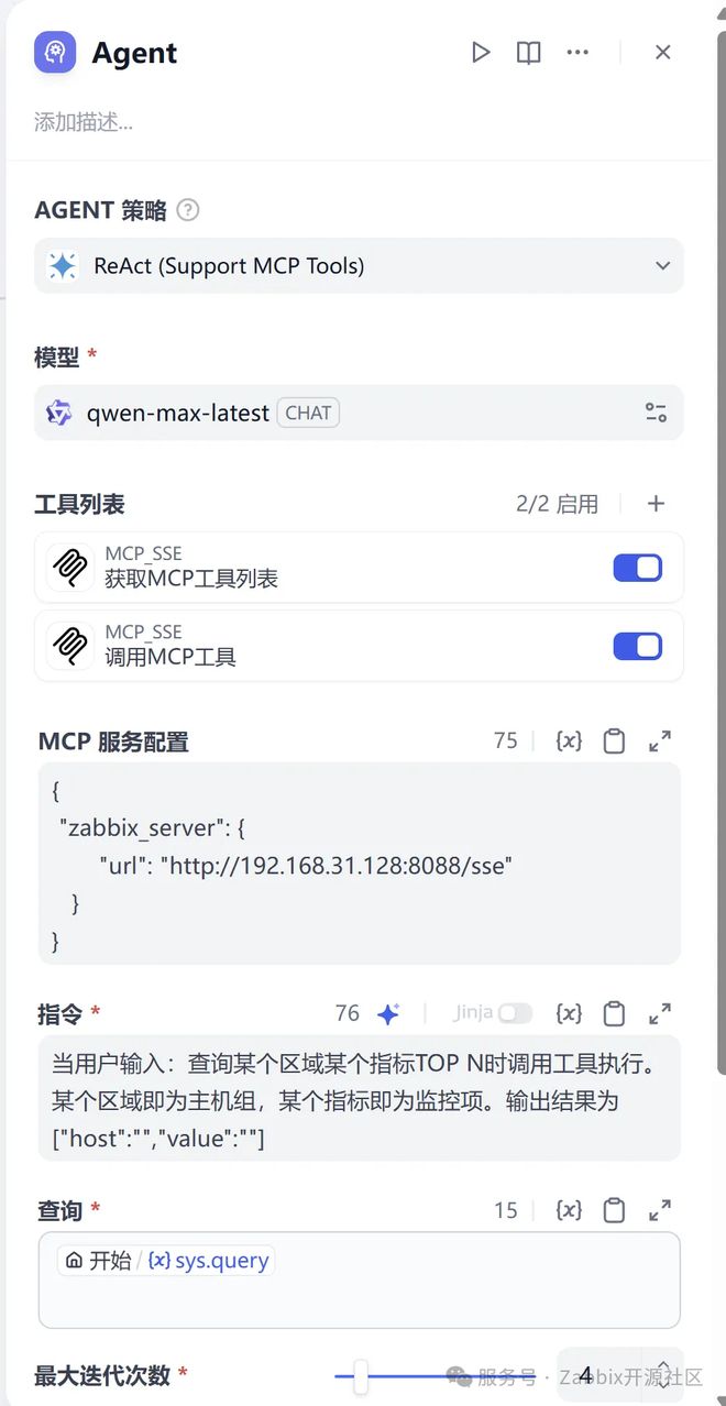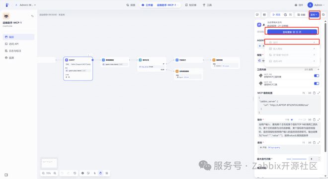 接下来,我们将使用Dify接入Zabbix MCP Server,并构建一个使用可视化图表展示zabbix数据的智能体。