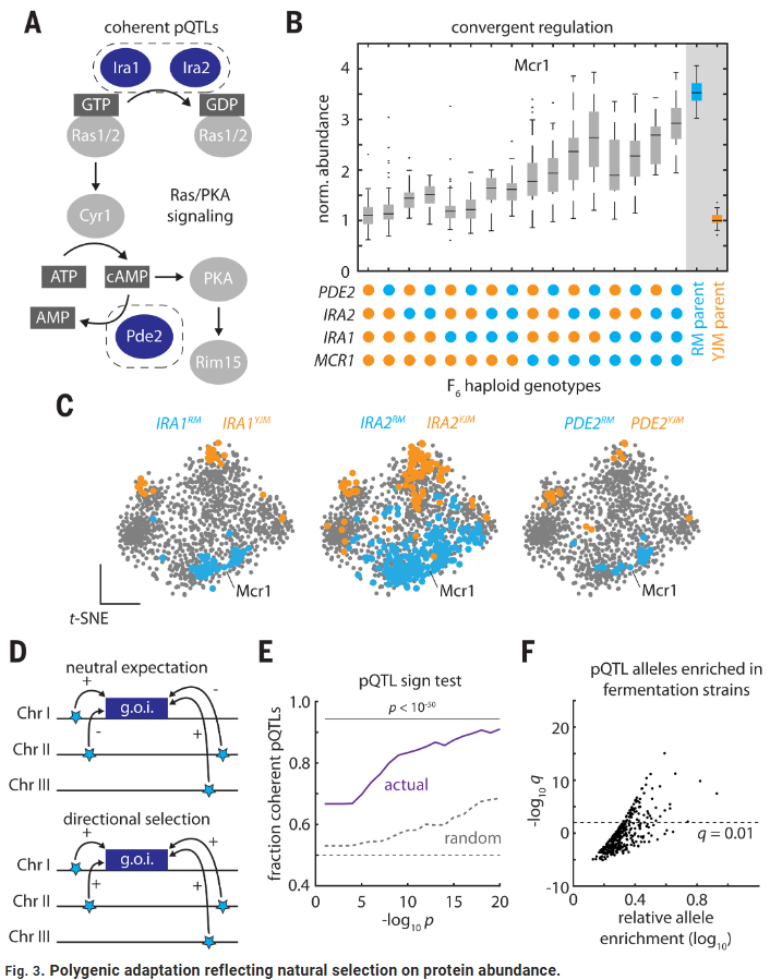 研究人员选取了来自不同生态环境的 185株酿酒酵母自然株系,进行全基因组测序、RNA测序与定量质谱蛋白质组学分析。