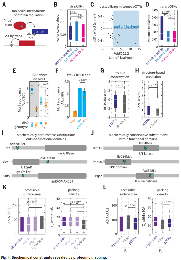 研究人员共检测到约5000种蛋白质的丰度变化,其中超过60%的差异可归因于顺式(cis)或反式(trans)遗传效应。