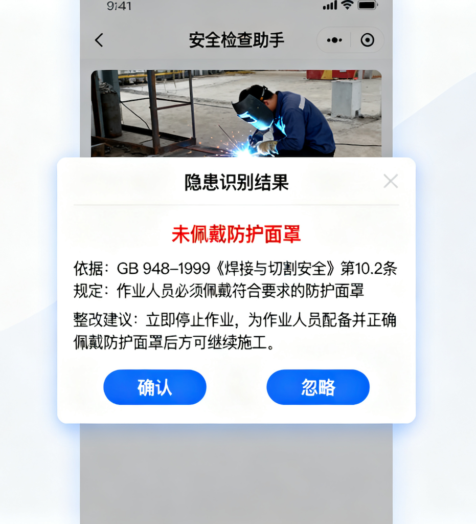 方案通过 “移动端交互 + 后端数据管理” 的技术架构,实现隐患识别结果的快速输出与全流程追溯,具体技术实现包括:
