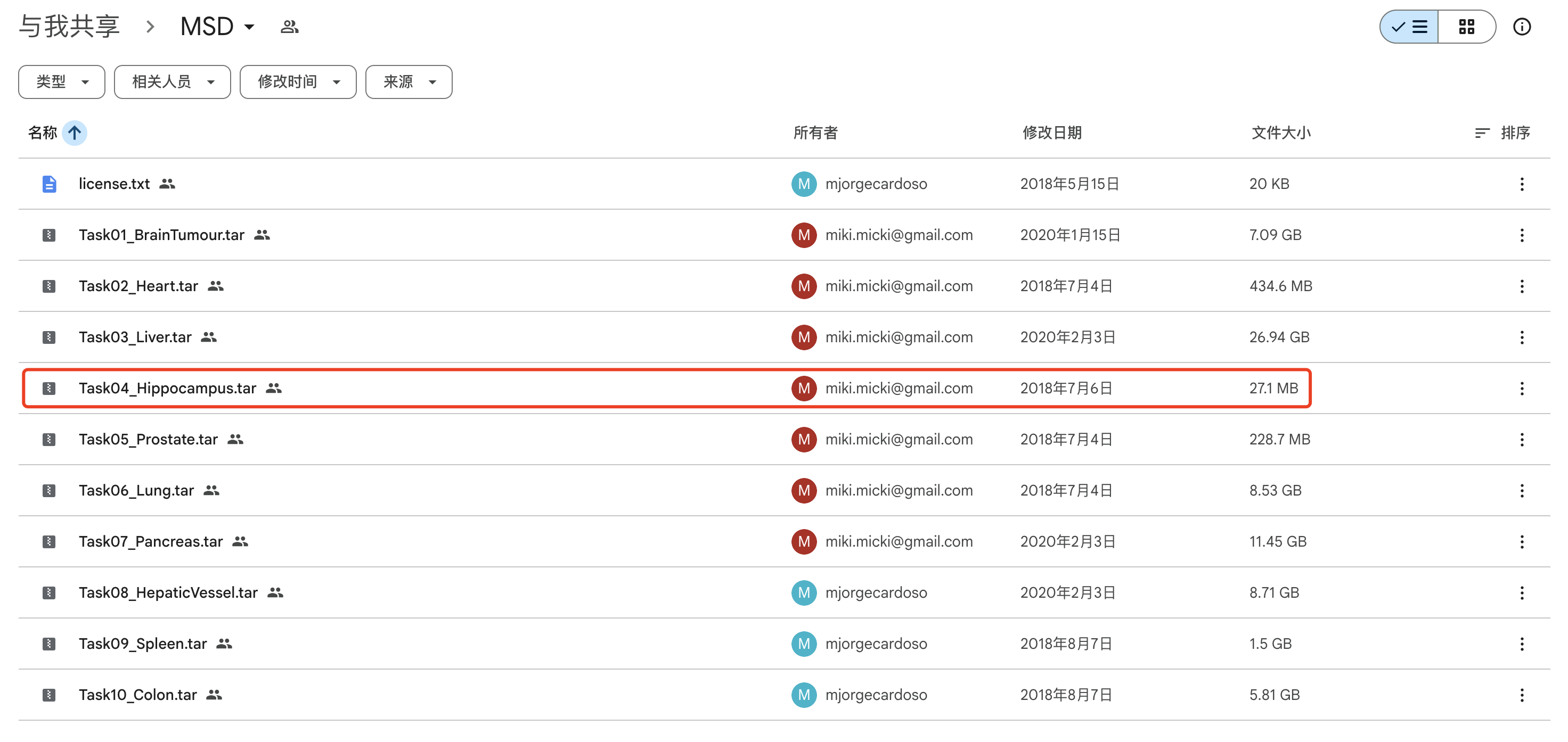 :海马体后部(Posterior)访问 Medical Segmentation Decathlon 官网: