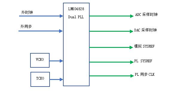 该方案也支持使用外部独立输入时钟,通过LMK04828扇出后输出给ADC和DAC。