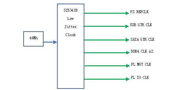 数字部分,使用高集成度的SI5341B,单路芯片输出PS和PL所需的各路时钟。