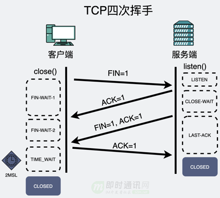 TCP四次挥手: