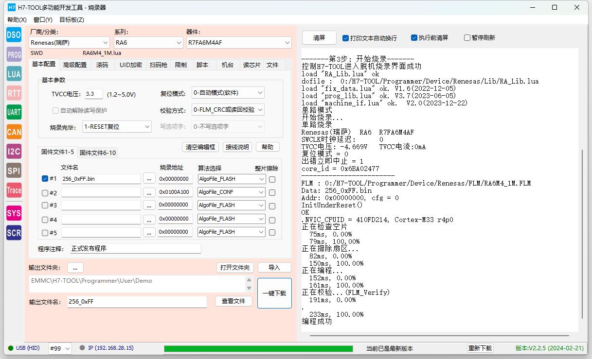 不出意外,这个月末如期发布H7-TOOL新版固件V2.26, 这次升级将增加大量脱机烧录芯片支持