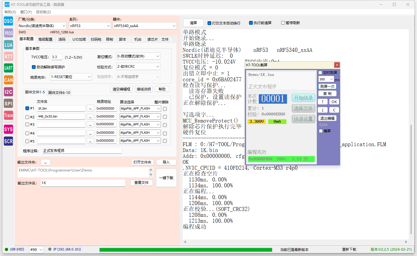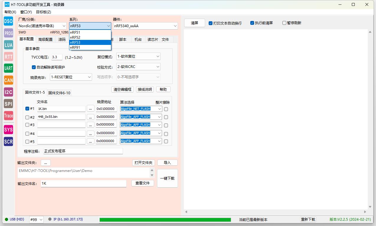 之前H7-TOOL脱机烧录对Nordic的nRF52, nRF51和nRF91都支持了SWD接口访问保护的解除支持。