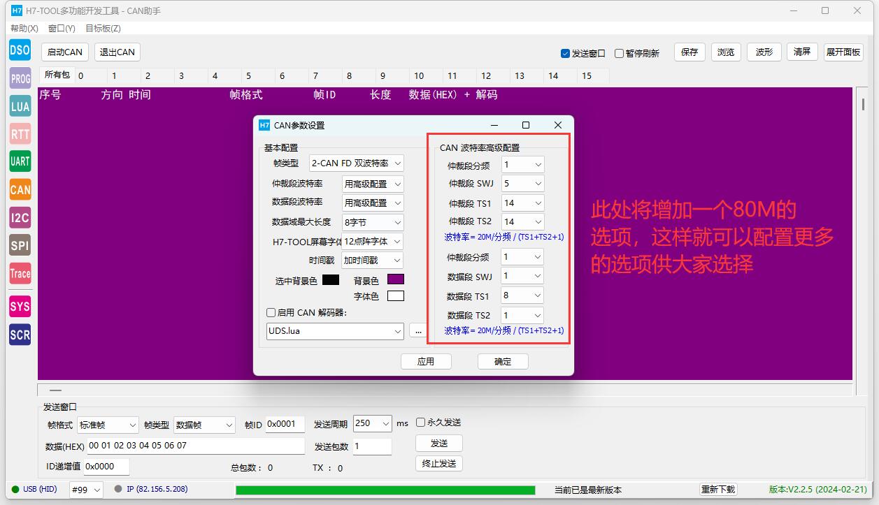 4、H7-TOOL的CAN/CANFD助手V2.26版更新