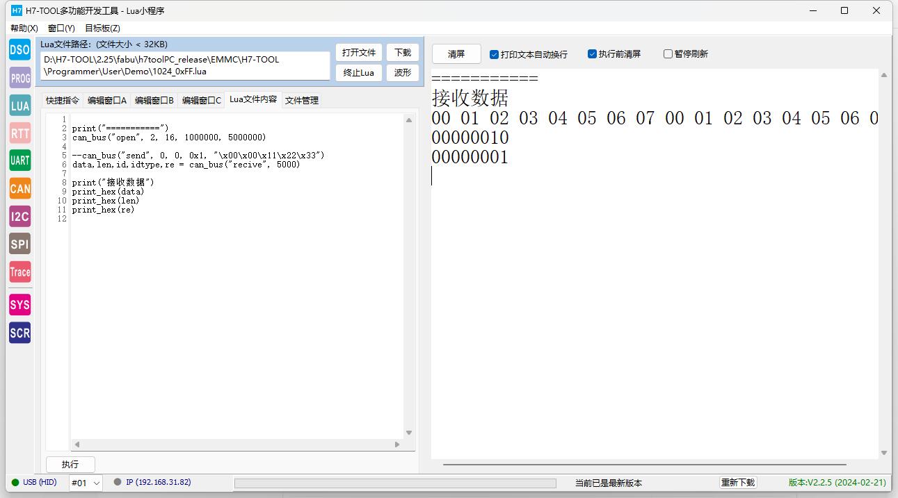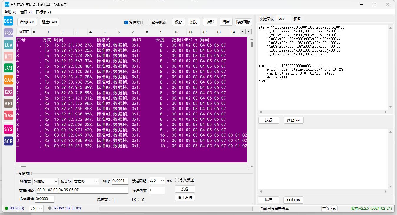 (3)H7-TOOL的CAN/CANFD助手全功能LUA API都已经注册完成,可以准备下期UDS Bootloader专题视频了
