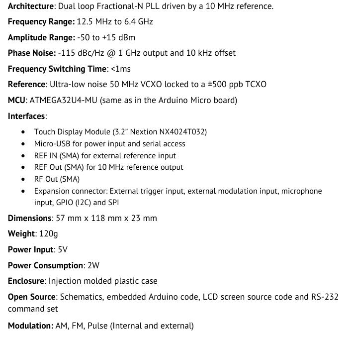 1、开源便携RF信号发生器,支持12.5MHz - 6.4GHz