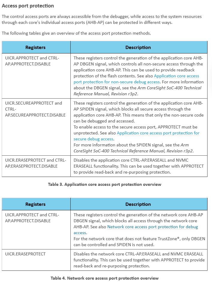 主要是nRF530比之前的芯片要麻烦些,这个是个双核M33芯片,保护项涉及到好几个寄存器配置,特别是解除保护的执行顺序一直没有捋顺。花了些时间,算是终于解决了。