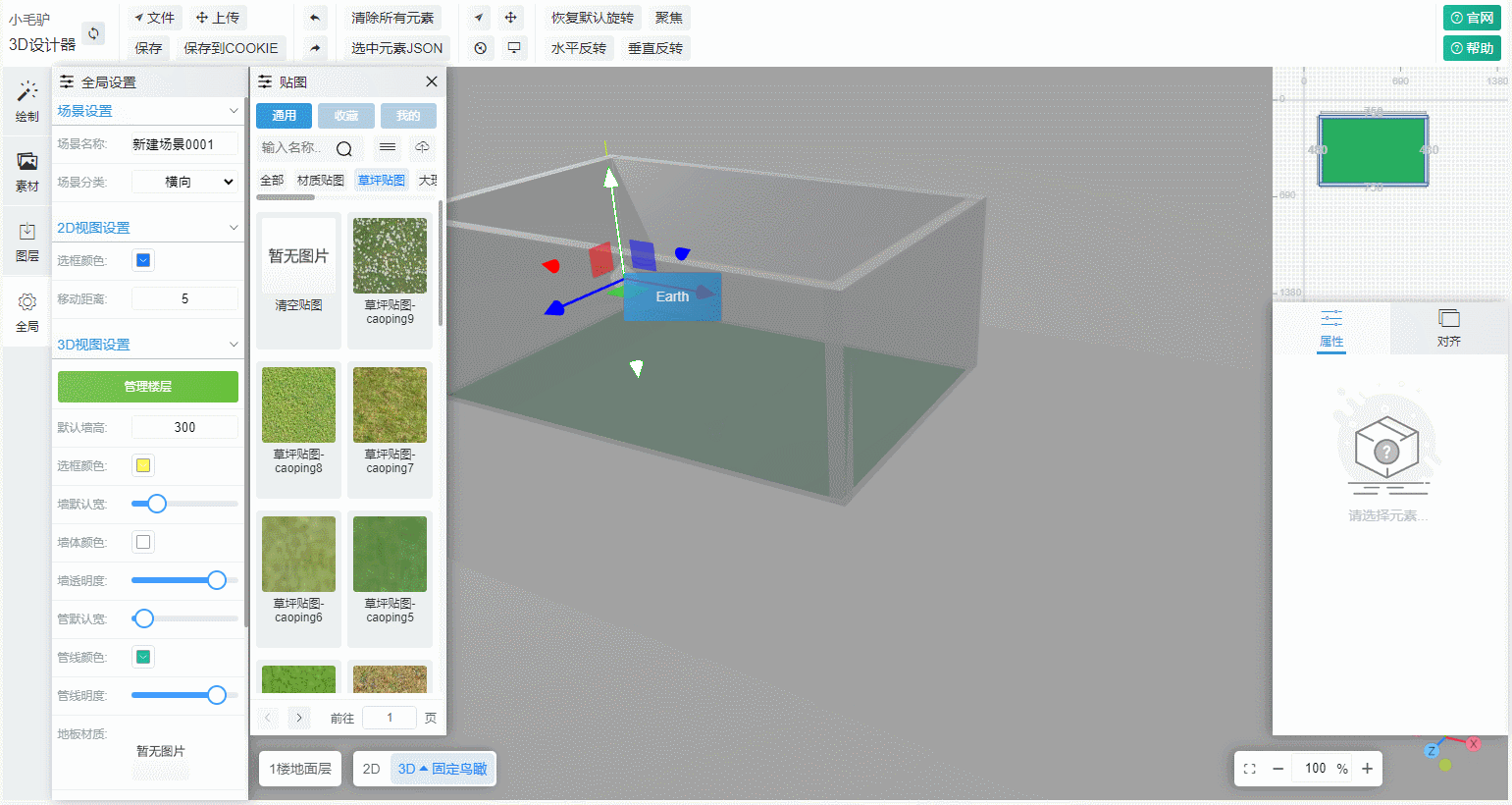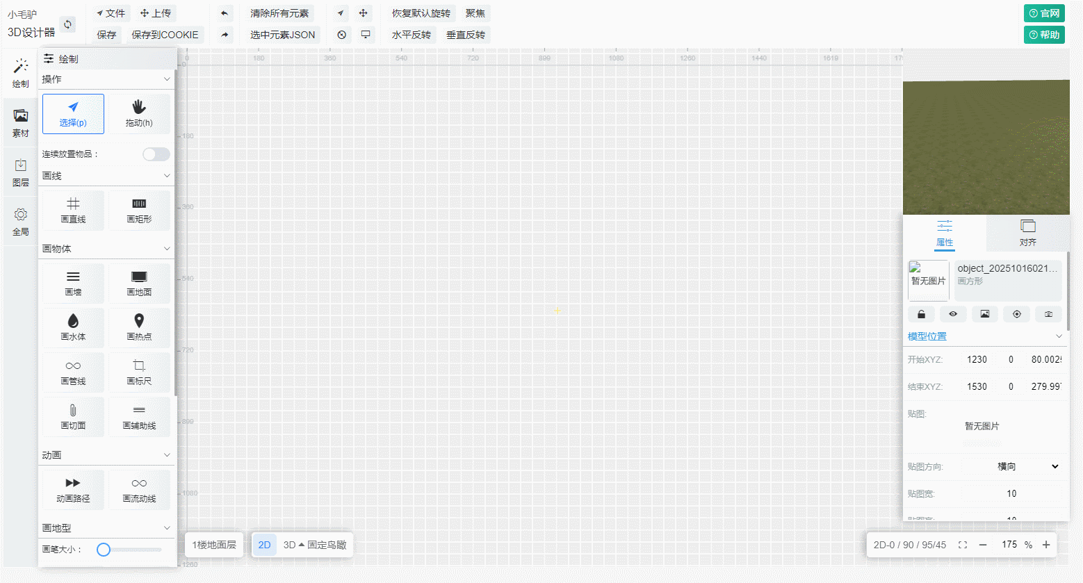 元素变换与操作: 支持对场景中的元素进行精确的移动、旋转和缩放操作。