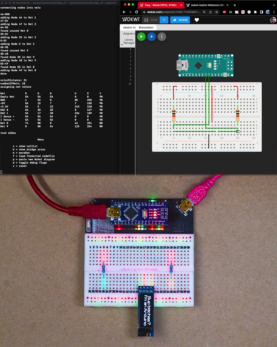 折腾跳线帽是大部分板子的常规操作,但分享的这个板子则不然,它旨在用模拟开关矩阵替换所有这些电线。大家所要做的就是插入器件并在配套 GUI 上进行虚拟连接。同时还具有许多内置功能,例如DAC和ADC,可以根据需要在原型下切换电路。它还在面包板区域嵌入了一些LED,可以点亮并提供彼此连接的视觉提示。