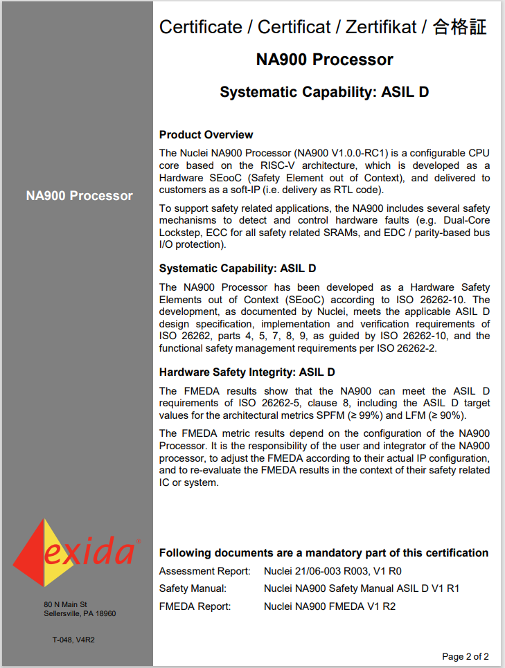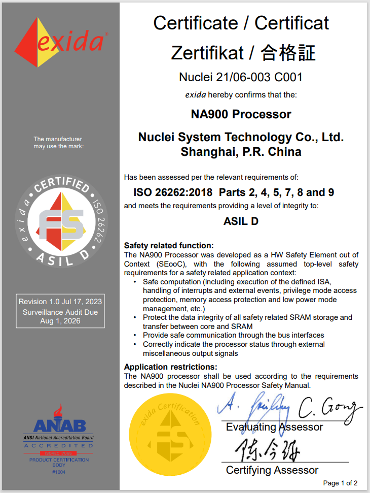 (4)芯来科技,业界首家获得 ISO 26262 ASIL-D 产品认证的 RISC-V CPU IP 供应商
