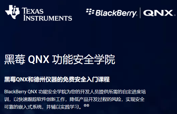 3、TI和黑莓QNX合作推出功能安全开发免费课程,同时提供90天 的QNX评估许可证