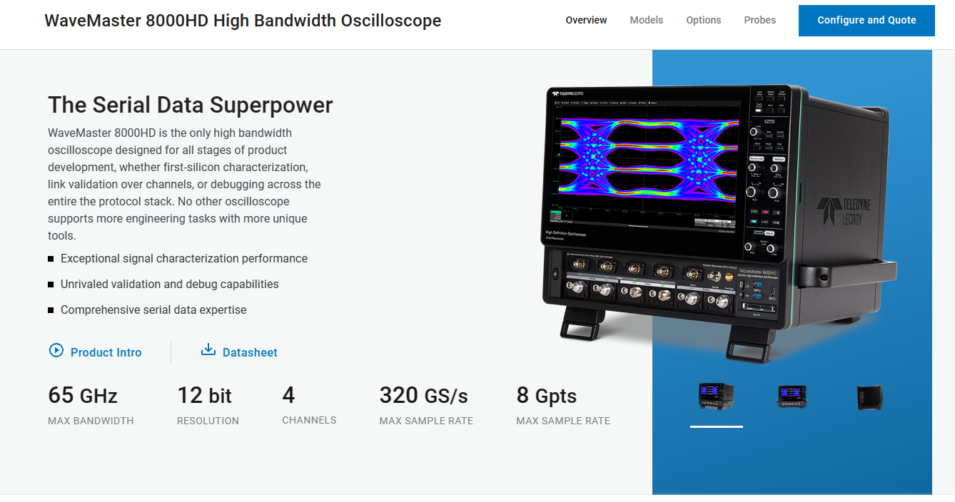 (1)示波器之最,力科发布320G采样率,64G带宽,12bit分辨率,4通道,8Gpts存储示波器