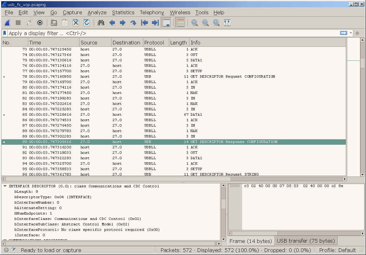 本次的全速2.0是基于树莓派方案设计:https://github.com/ataradov/usb-sniffer-lite,分析仪上位机直接采用的Wireshark。