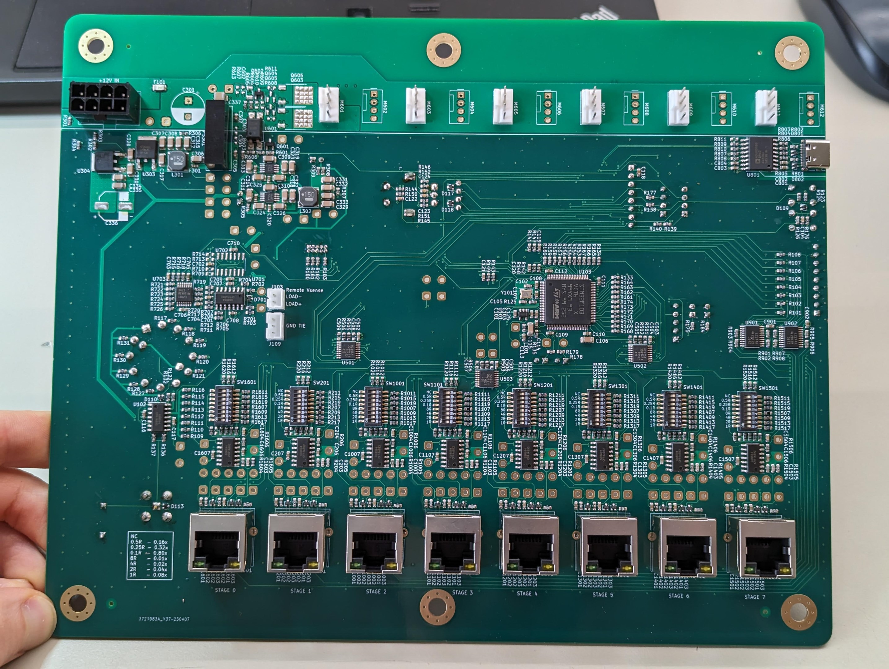 大多数电子负载使用基于MOSFET的线性设计。然而,没有一个已发表的设计达到最坏情况下所需的持续脉冲。此设计使用一系列开关式高功率机箱安装电阻器来产生任意负载。这种方法提供了极高的可扩展性、低成本和高健壮性。虽然原理简单,但庞大的规模和对高频开关的需求使其成为一个具有挑战性的设计