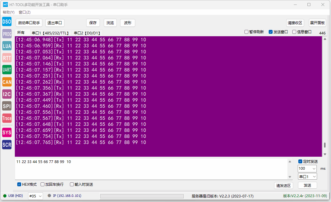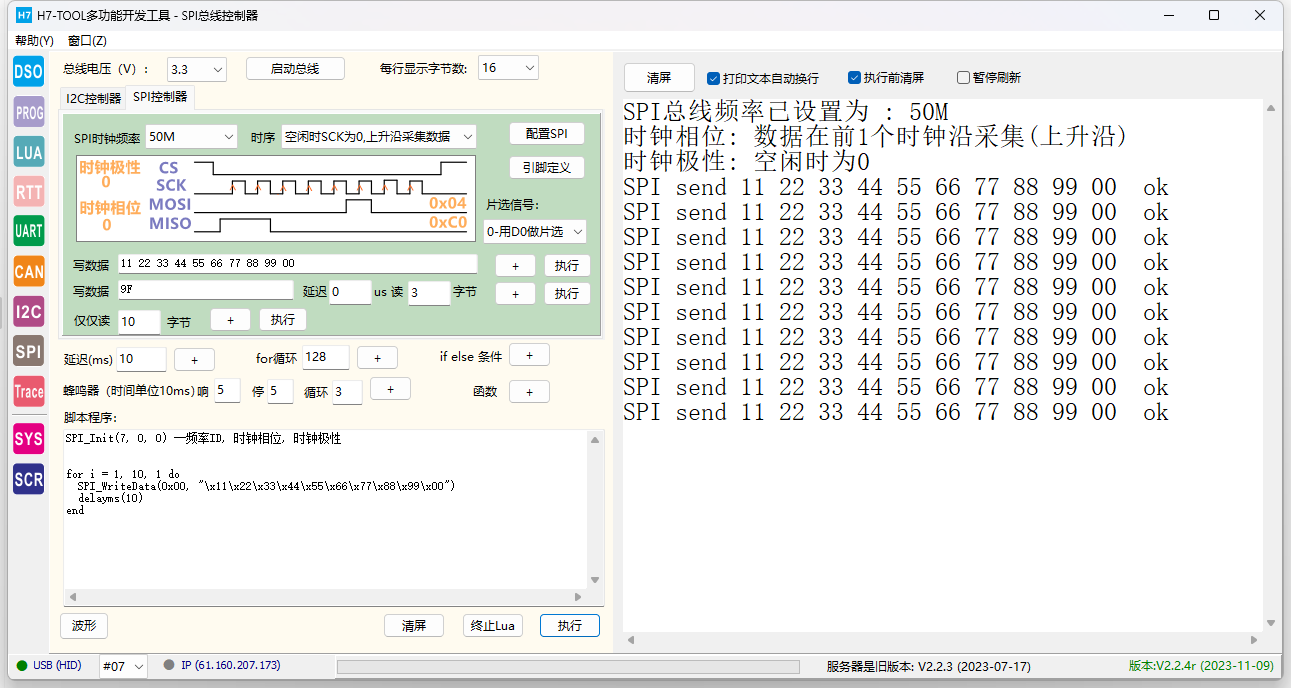 (3)H7-TOOL的2.24新版固件最后一个SPI从机功能收尾完成,写速度50-60MHz,读速度12.5 -20MHz