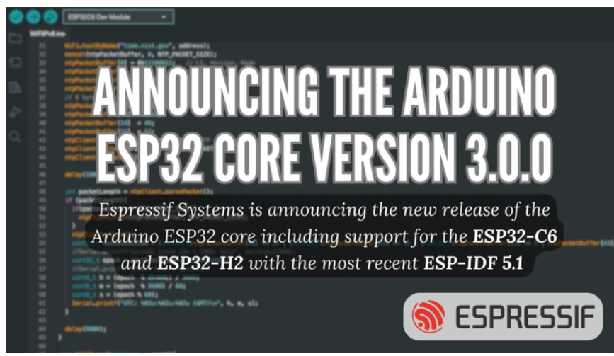 (2)乐鑫宣布发布 Arduino ESP32 新版本v3.0.0,该版本使用最新的 ESP-IDF v5.1,并新增对 ESP32-C6 和 ESP32-H2 的支持。