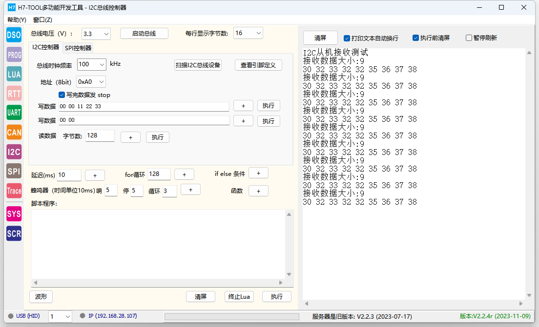 (2)H7-TOOL新版2.24固件增加的I2C从机模式,速度最高1MHz,开启Fast-mode Plus模式