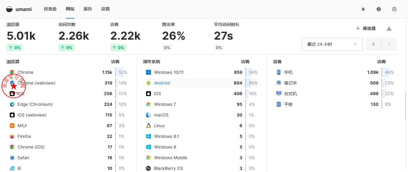 因为51统计最近一直出现问题,并且有传言称51统计的js文件会出现劫持跳转的问题,于是就想更换统计方式,Umami因此成为我的主要选择。51统计好的地方在于能够显示出统计挂件,但是有大佬用umami的api也制作出了数据挂件