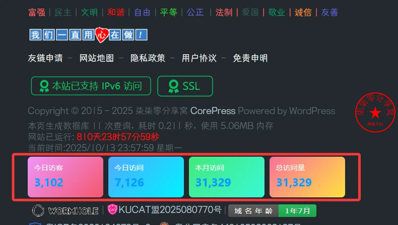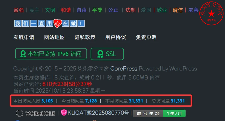今日访问人数 <span id="todayUv">0</span> | 今日访问量 <span id="todayPv">0</span> | 本月访问量 <span id="monthPv">0</span> | 总访问量 <span id="totalPv">0</span>