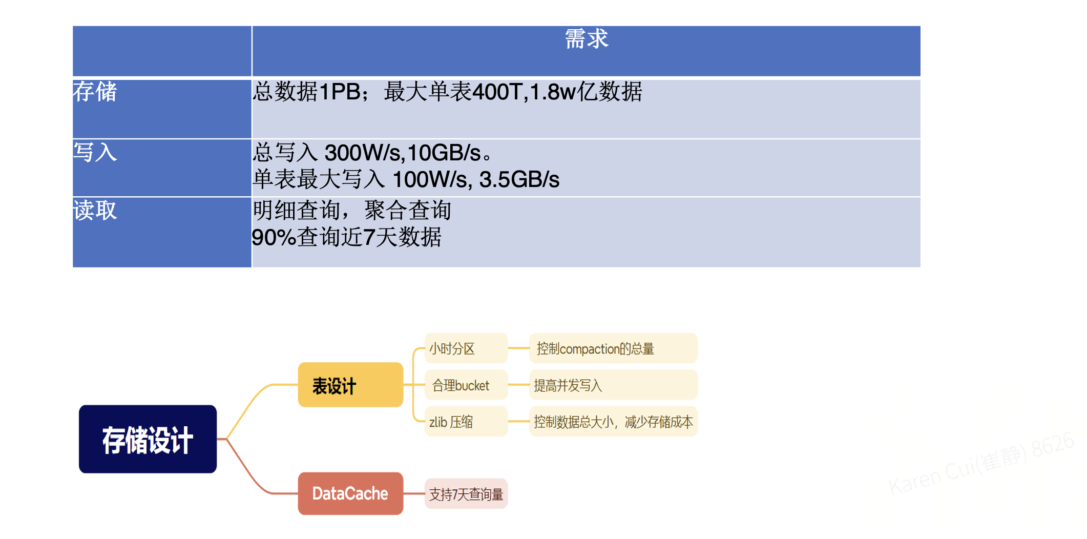 在读取场景中,主要分为两类:一类是基于 VID 等字段的明细查询,另一类是常见的 聚合分析。其中,约 90% 的查询集中在 7 天内的数据,因此在存储设计时,需要重点围绕这一特征进行优化。