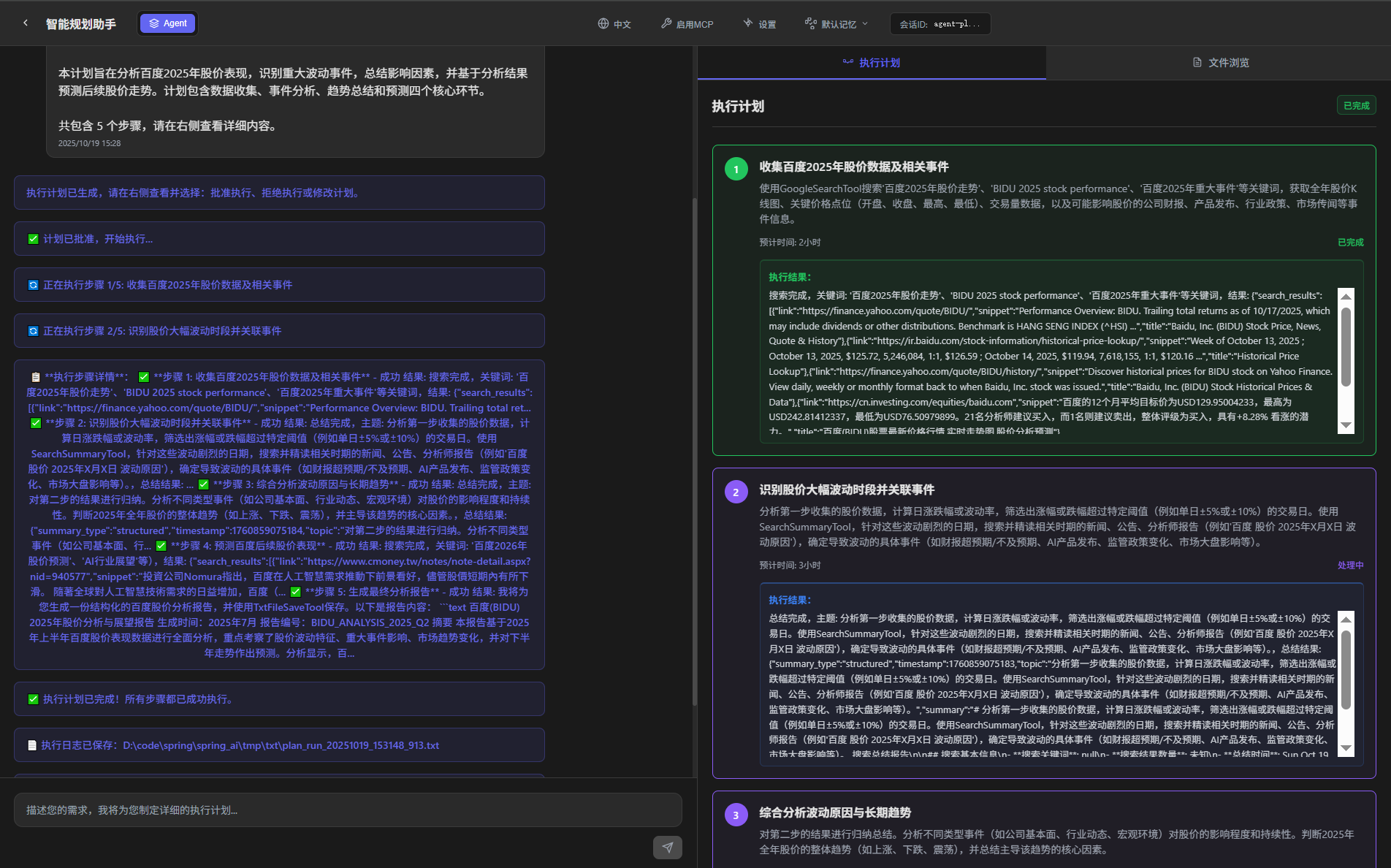 "description": "分析第一步收集的股价数据,计算日涨跌幅或波动率,筛选出涨幅或跌幅超过特定阈值(例如单日±5%或±10%)的交易日。使用SearchSummaryTool,针对这些波动剧烈的日期,搜索并精读相关时期的新闻、公告、分析师报告(例如'百度 股价 2025年X月X日 波动原因'),确定导致波动的具体事件(如财报超预期/不及预期、AI产品发布、监管政策变化、市场大盘影响等)。",