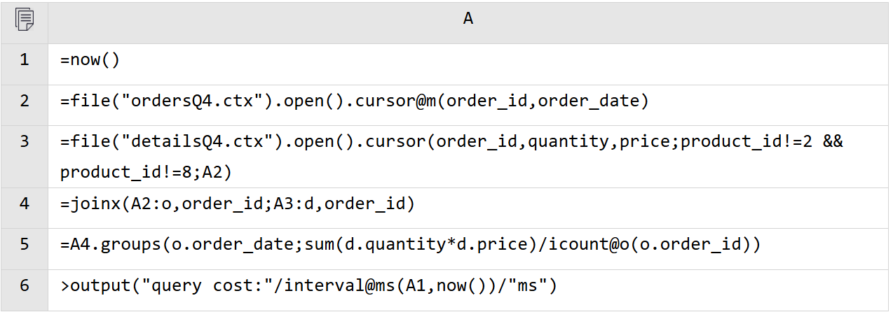 SPL 的有序去重计数性能要好的多,而且有序去重计数正好也需要数据对 order_id 有序,可以在有序归并后顺利实施。