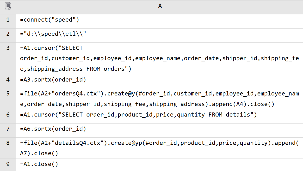 先做数据准备,把历史数据从数据库导出为 CTX 文件。在 ETL 中定义 Q4.etl: