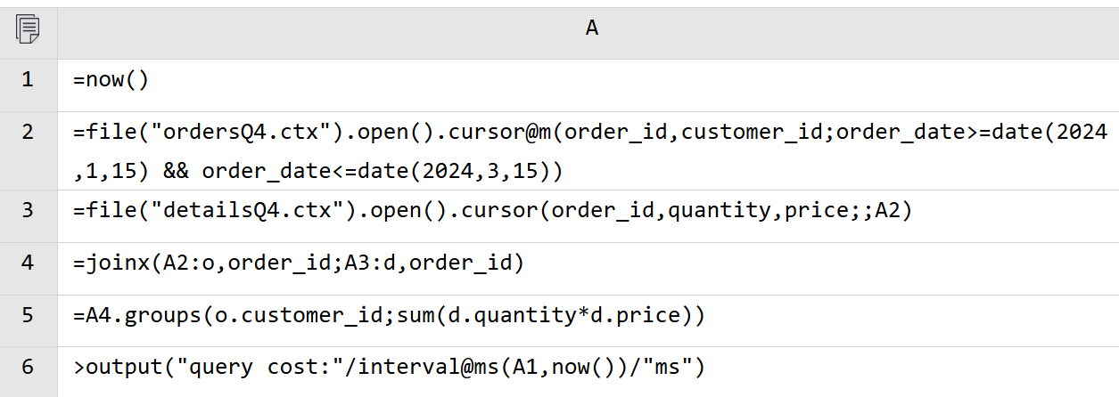 A3 中游标的最后一个参数是 A2,表示多线程并行时,details 表会跟随 orders 表分段,保证后面两个表有序归并的正确性。