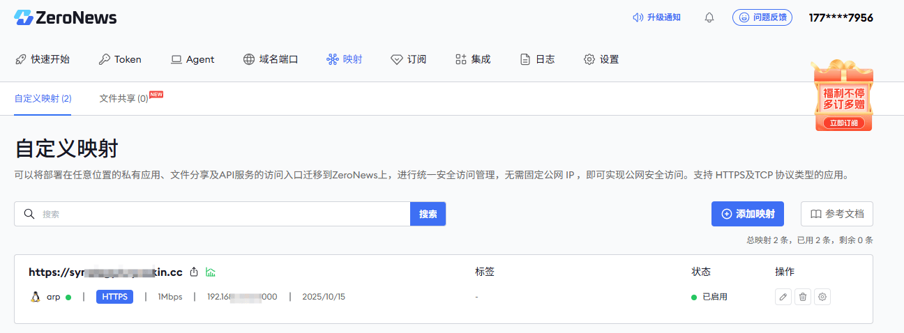 1. 安装完成后,回到 ZeroNews 平台,Agent已经显示在线。