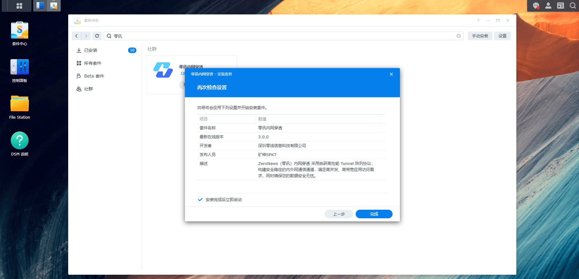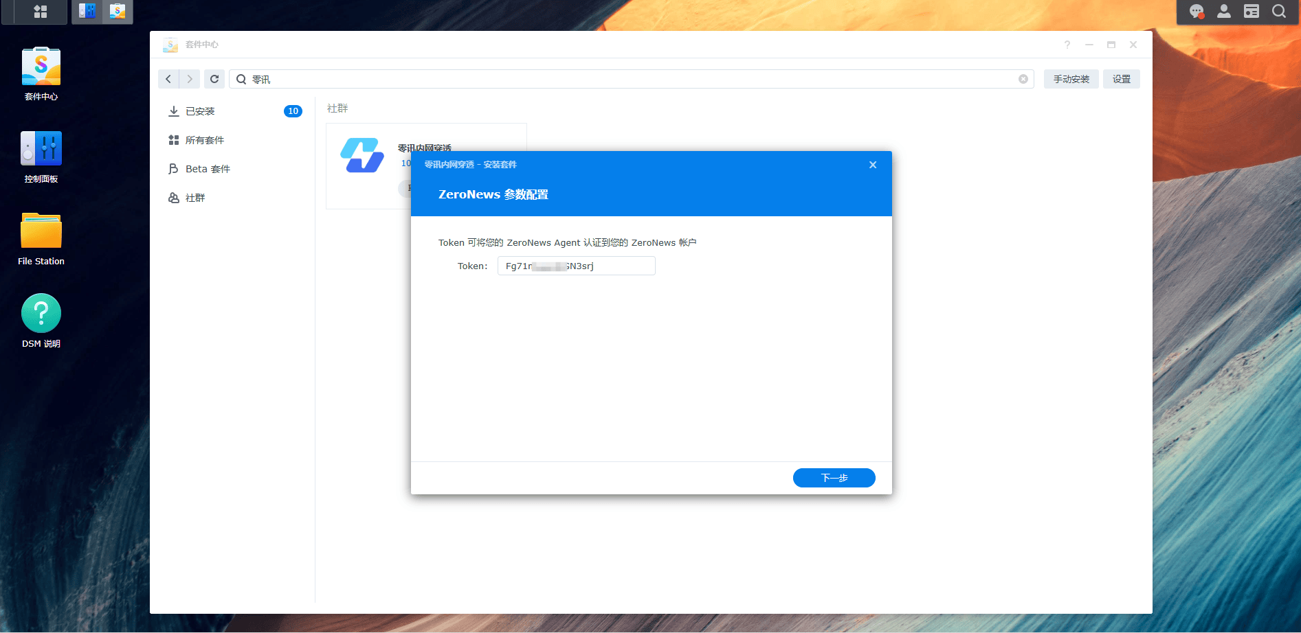 3. 找到 ZeroNews 套件,点击 「安装套件」。