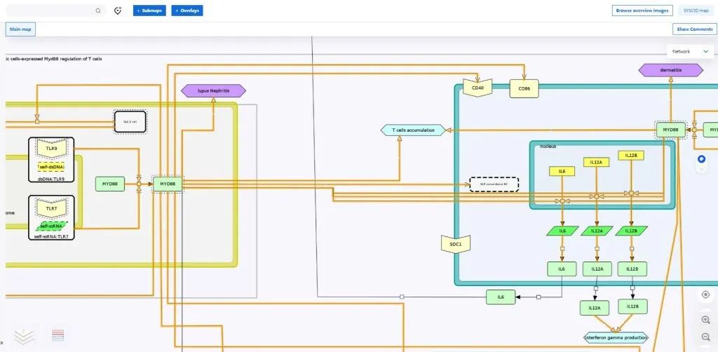 3. 当我们选择只看SLE机制通路时候,其分子通路用橙色加粗。