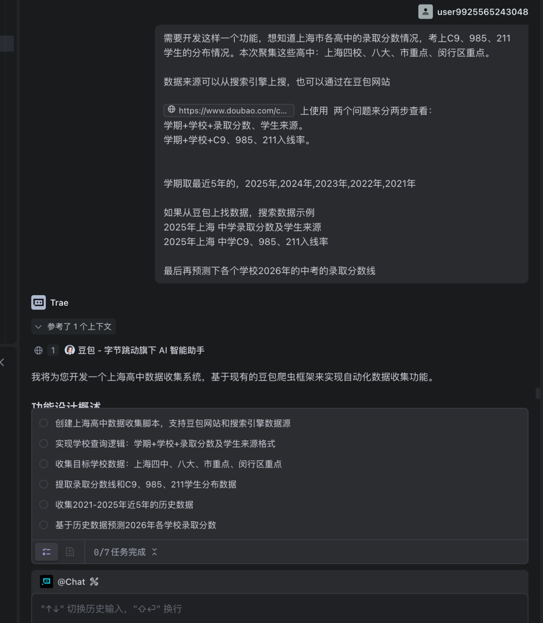 https://www.doubao.com/chat/ 上使用 两个问题来分两步查看:
